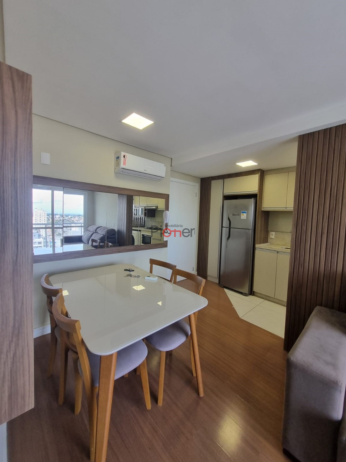 Imóvel Mobiliado; 1 Dormitório; Sala; Sacada; Cozinha Conjugada c/ Área de Serviços; Banheiro Social; Ar Condicionado; Rebaixe em Gesso; Piso Laminado; Piso em Porcelanato; Garagem; Portaria; Elevador; Bicicletário; Lavanderia Coletiva; Salão de festas; Espaço Gourmet; Sala de Jogos; Terraço Skybar; Horta Coletiva; Gás Central; Hidrômetros Individuais