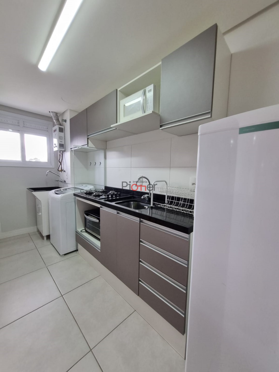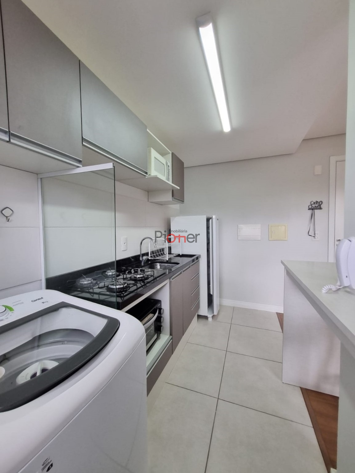 Imóvel Mobiliado; 1 Dormitório; Sala; Cozinha Sob Medida; Área de Serviços; Banheiro Social; Piso Porcelanato; Piso Laminado; 1 Box de Garagem; Portaria; Elevador; Bicicletário; Lavanderia Coletiva; Salão de Festas; Gás Central; Hidrômetro Individual