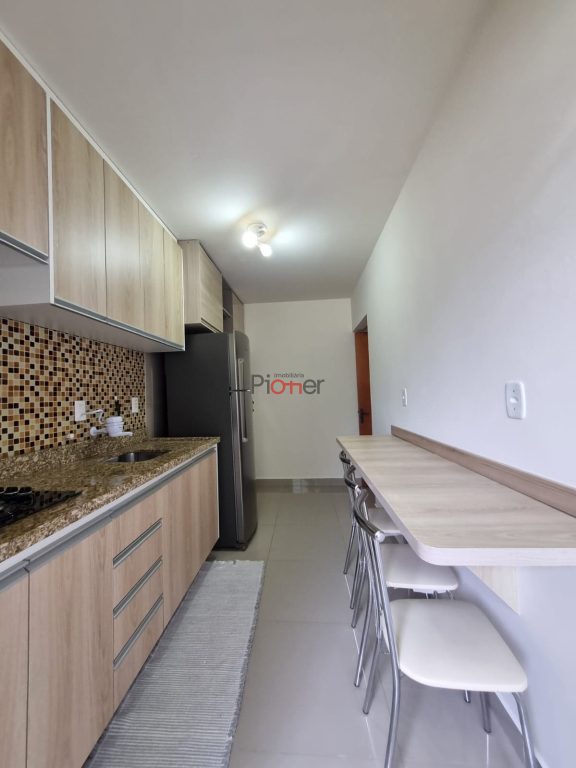Imóvel Mobiliado; 2 Dormitórios; Cozinha c/ Armários; Sala 2 Ambientes; Sacada; Área de Serviços; Banheiro Social; Piso Cerâmico; Piso Porcelanato; 1 Box de Garagem; Elevador; Zelador; Playground; Salão de festas; Quadra de Esporte; Gás Central; Hidrômetro Individual