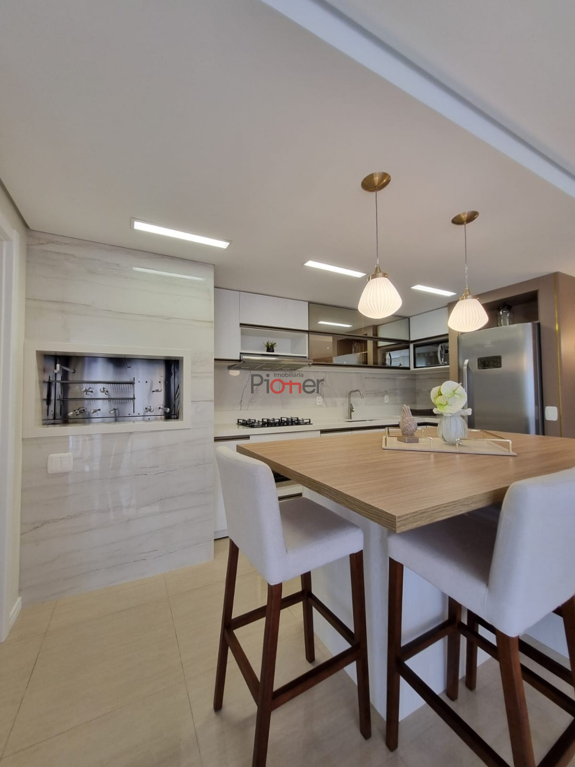 Imóvel Mobiliado; 3 Dormitórios Sendo 2 Suítes; Suíte Americana; Sala 2 Ambientes; Sacada; Closet; Cozinha c/ Armários; Área de Serviços; Lavabo; Churrasqueira; 2 Ar Condicionados Instalados; Rebaixe em Gesso; Depósito; Piso Laminado; Piso Porcelanato; 3 Vagas de Garagem Cobertas; Elevador; Salão de festas; Gás Central; Hidrômetro Individual