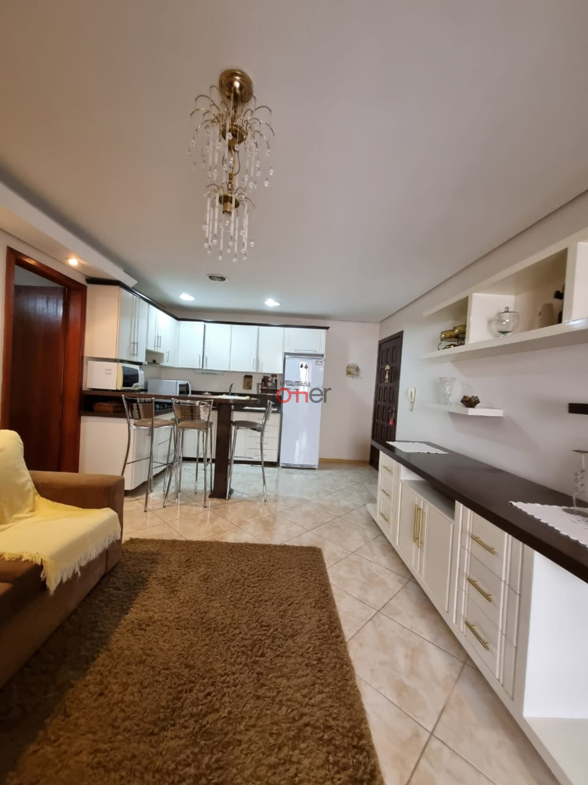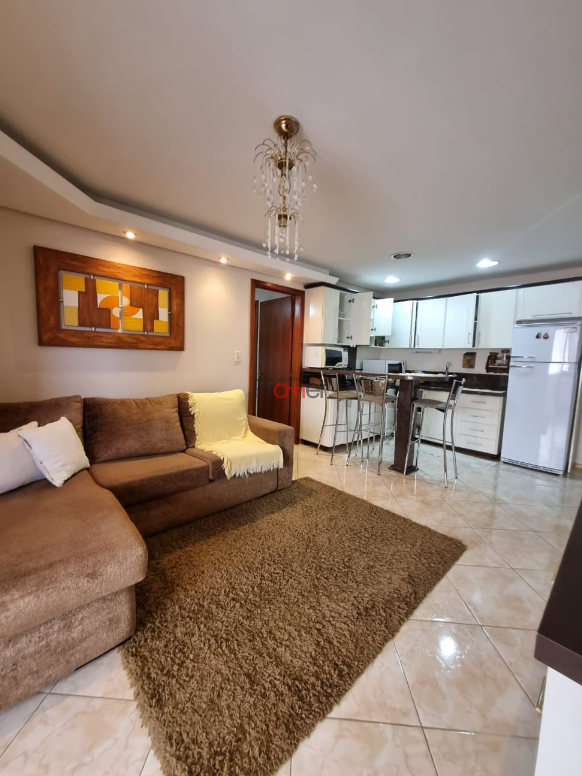 Imóvel Mobiliado; 1 Dormitório; Sala 2 Ambientes; Cozinha c/ Armários; Sacada; Banheiro Social; Banheira Hidromassagem; Lavabo; Churrasqueira; Piso Cerâmico; 1 Box de Garagem; Gás Central; Hidrômetro Individual