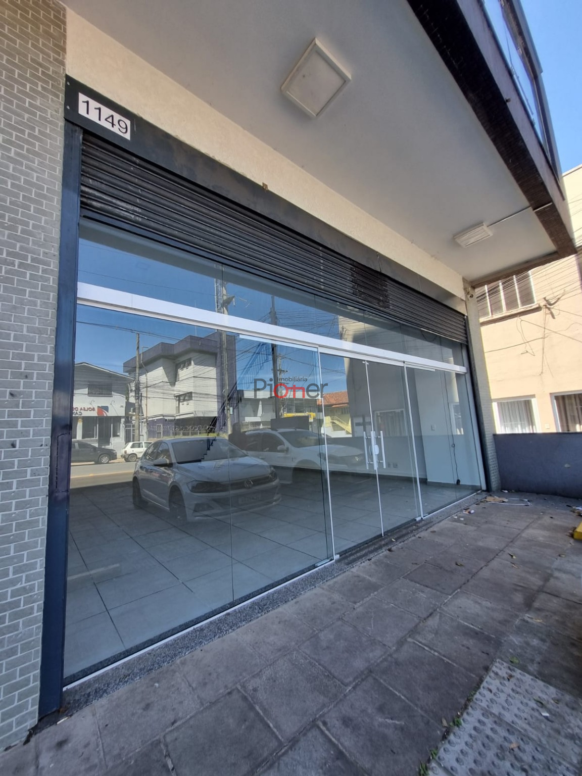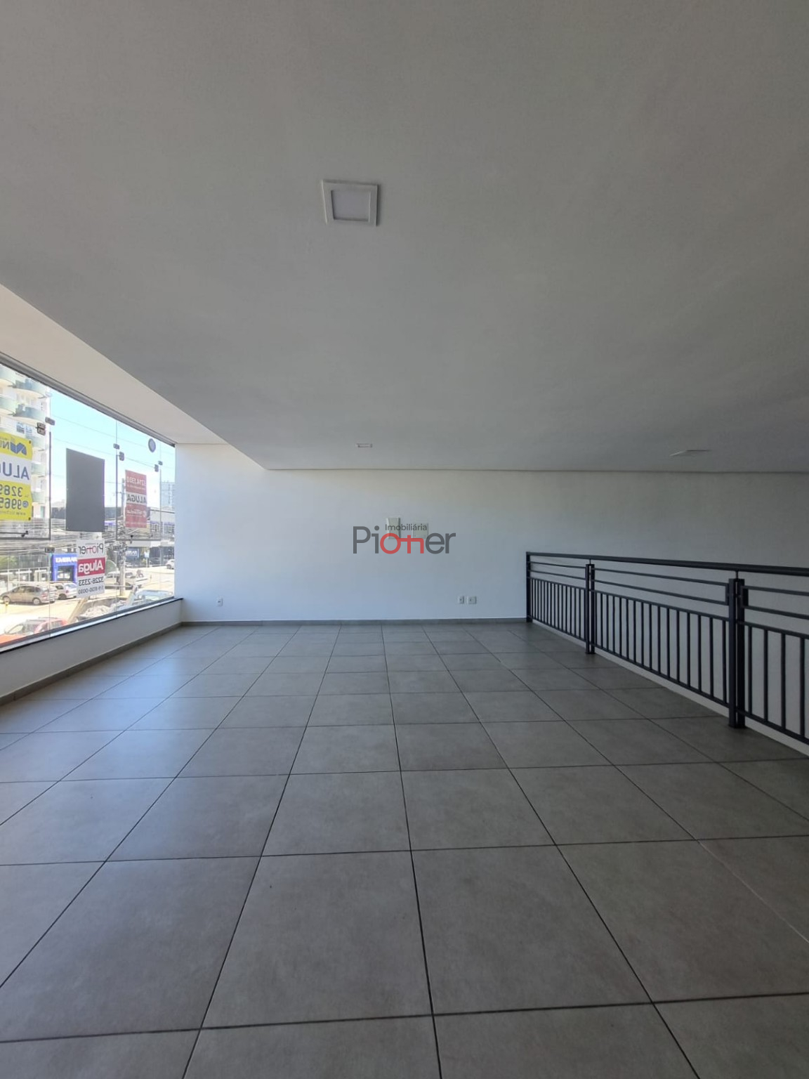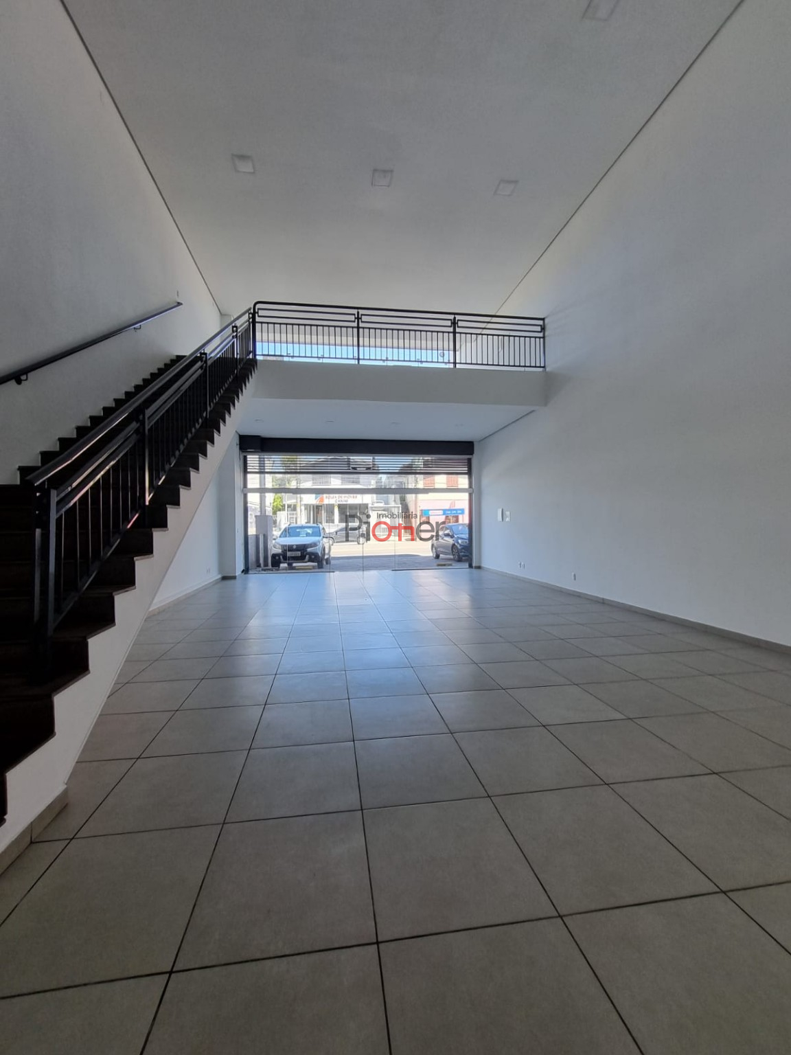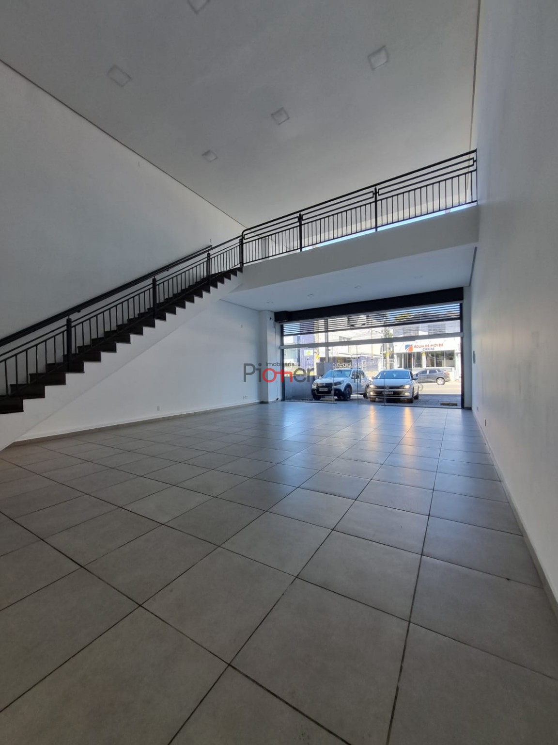 Sala c/ 143m²; Mezanino; Fachada de Vidro; 1 Banheiro; Piso Porcelanato; Estacionamento Frontal; Cortina de Ferro Automatica