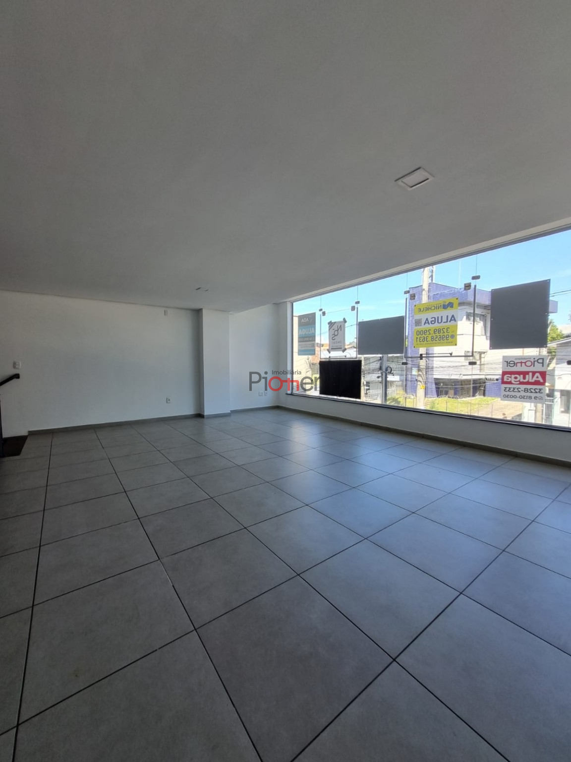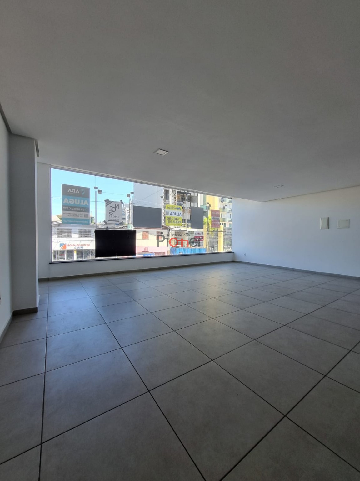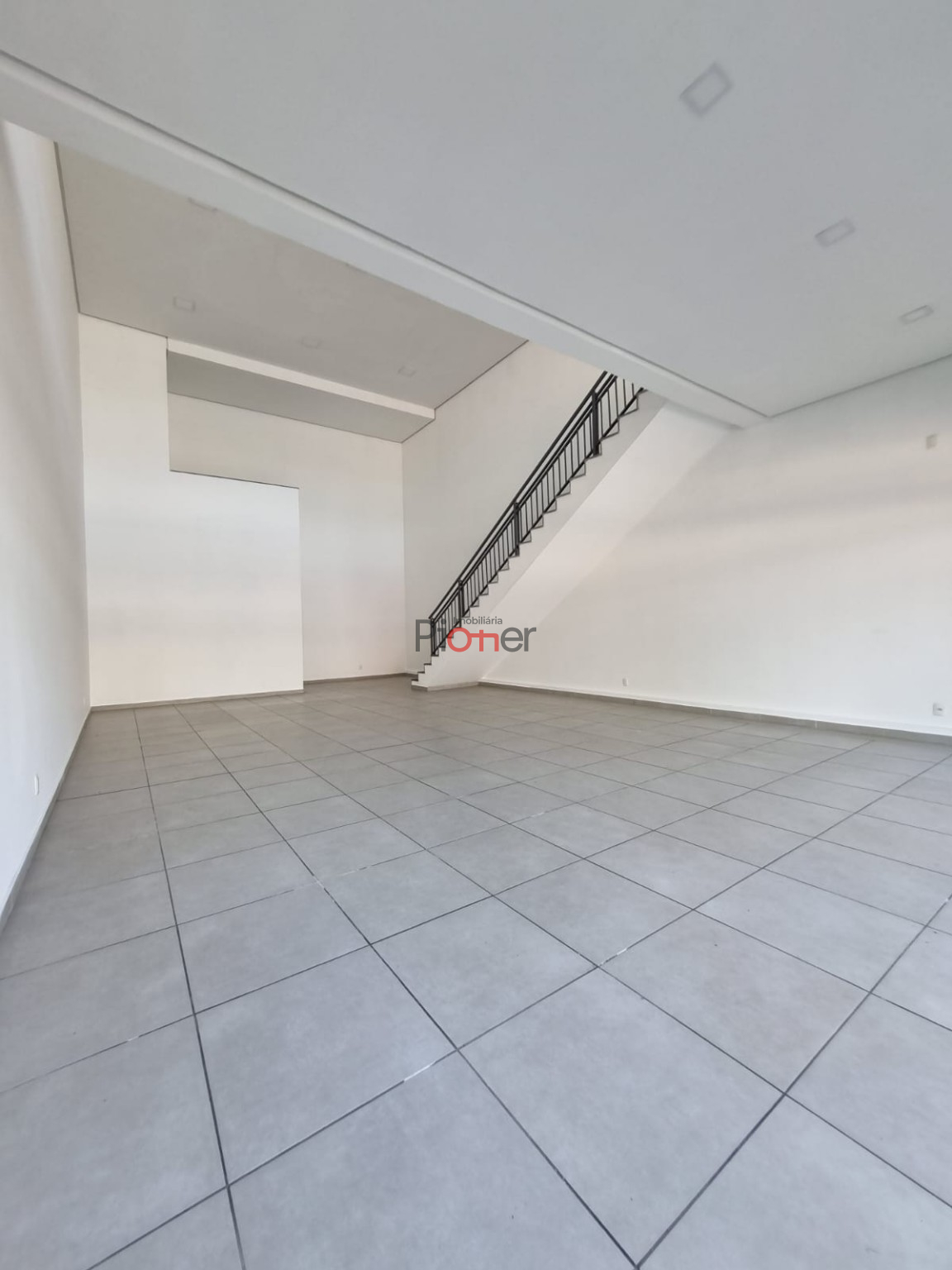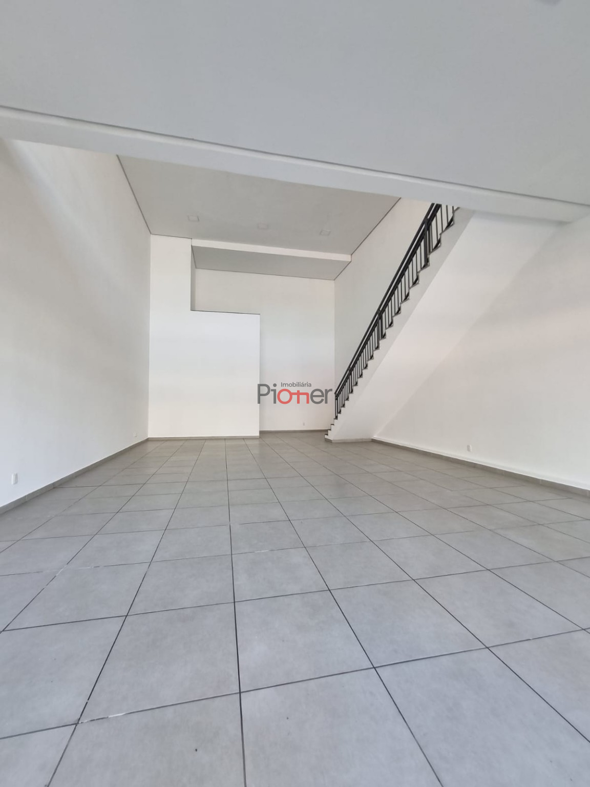 Sala c/ 143m²; Mezanino; Fachada de Vidro; 1 Banheiro; Piso Porcelanato; Estacionamento Frontal; Cortina de Ferro Automatica